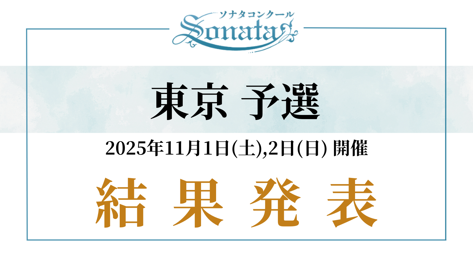 【結果発表】東京予選 2025/11/01 東京予選(2025/11/1(土)開催分)の結果を公開しました 2025年11月1日(土)に開催しました、第10回ソナタコンクール東京予選の結果を発表いたします。 東京予選 結果 コンクールに関するお問い合わせは、下記お問い合わせフォームよりお問い合わせください。 お問い合わせフォームへ -------------------- 各種SNSでもソナタコンクールのお知らせを更新しております! 各アイコンをタップして、是非お友達登録をお願いいたします。 この記事をシェアする Facebookでシェア Twitterでシェア LINE でシェア 次の投稿 前の投稿 こちらの記事も読まれています