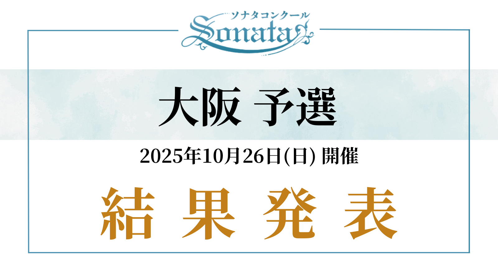 【結果発表】大阪予選 2025/10/26 大阪予選(2025/10/26開催分)の結果を公開しました 2025年10月26日(日)に開催しました、第10回ソナタコンクール大阪予選の結果を発表いたします。 大阪予選 結果 コンクールに関するお問い合わせは、下記お問い合わせフォームよりお問い合わせください。 お問い合わせフォームへ -------------------- 各種SNSでもソナタコンクールのお知らせを更新しております! 各アイコンをタップして、是非お友達登録をお願いいたします。 この記事をシェアする Facebookでシェア Twitterでシェア LINE でシェア 前の投稿 こちらの記事も読まれています